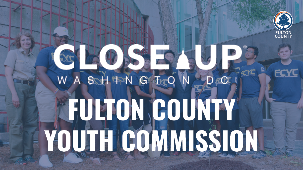 The “Close Up Washington, DC” program’s mission aligns closely with the goals of the Fulton County Youth Commission. The FCYC is a leadership program for outstanding high school students in Fulton County, with a primary purpose of advocacy for children and youth issues. The program empowers Youth Commissioners to become involved in the local government process regarding youth-related legislation, policies, and programming. For more information regarding the FCYC, please contact Reginald Crossley, Program Coordinator at Reginald.Crossley@fultoncountyga.gov or 404-612-7386.