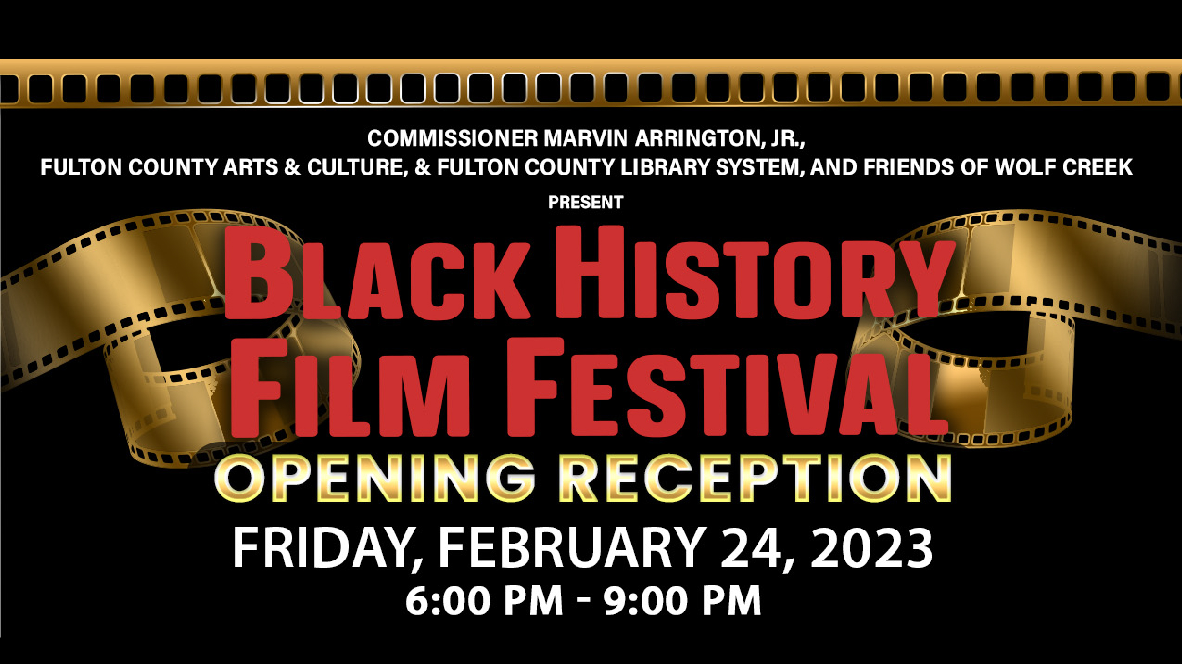Fulton County District 5 Commissioner Marvin S. Arrington Jr. presents the 2023 Black History Month Film Festival Opening Reception and the Student Spoken Word and Reels Competitions. The Black History Month Film Festival in conjunction with the Fulton County Library System, Fulton County Arts & Culture, and Black Gents.