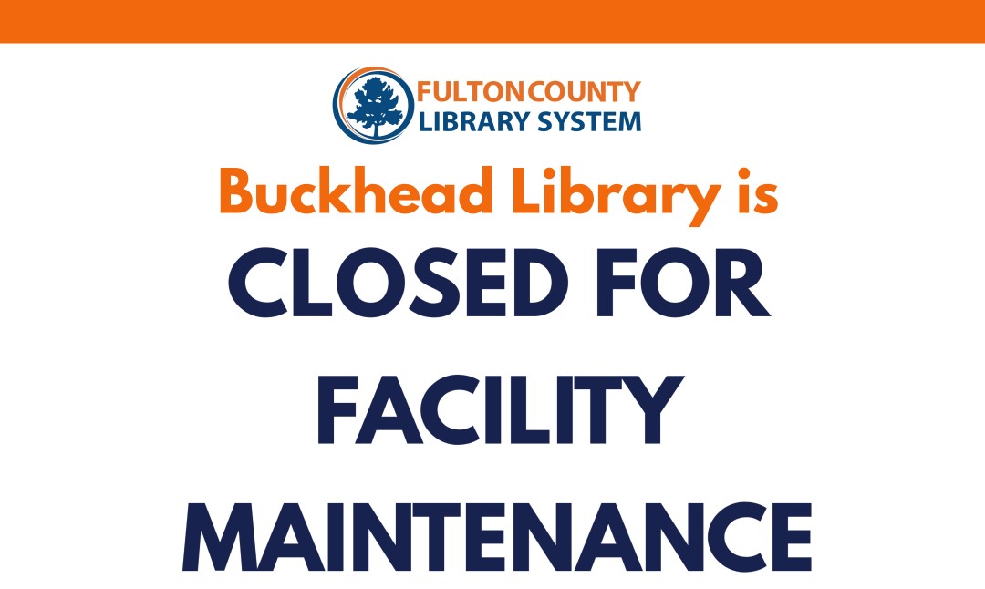 The Fulton County Library system recently announced the temporary closure of the Buckhead Library in order to complete sanitary sewer repair work. The library will be closed to the public beginning Friday, May 26, and will reopen to the public after the Memorial Day holiday on Tuesday, May 30 at 10 a.m.