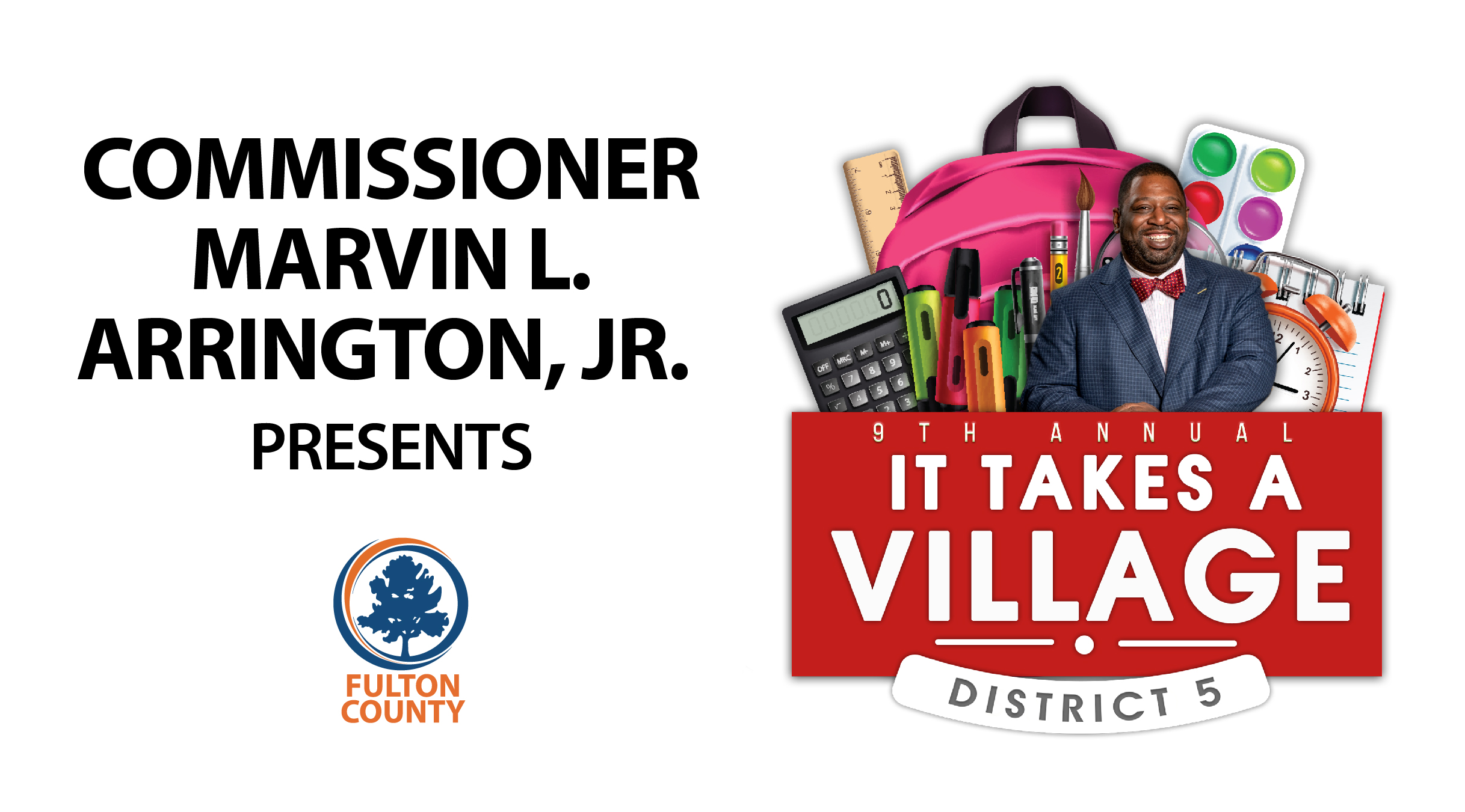 Fulton County District 5 Commissioner Marvin S. Arrington, Jr. is hosting his 9th Annual “It Takes a Village” Back-to-School Supply Giveaway to kick off the 2023-2024 school year. In partnership with the Fulton County Sheriff’s Office, Behavioral Health and Developmental Disabilities, Peach State Health Plan, Amazon, and Friends of Wolf Creek, there will be 3 events to ensure District 5 students have the tools needed to assist with their learning.