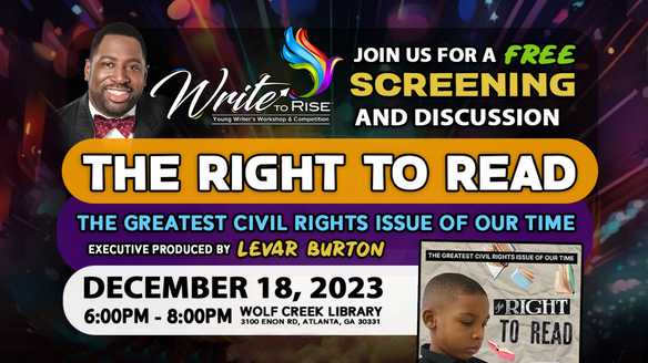 Fulton County District 5 Commissioner Marvin S. Arrington, Jr., is inviting youth to join him for a free screening and discussion of ‘The Right to Read’. A screening of the film will be held on Monday, December 18th from 6 p.m. until 8 p.m. at the Wolf Creek Library located at 3100 Enon Road, South Fulton, GA 30331.