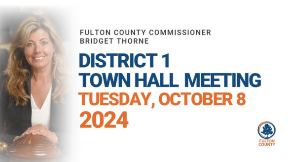 Fulton County District 1 Commissioner Bridget Thorne will hold a Town Hall meeting to provide vital updates for the residents in North Fulton County. The scheduled Town Hall will be held on Tuesday, October 8, at 6 p.m. at the Fulton County Customer Service Center, 11575 Maxwell Road, Alpharetta, GA 30009.